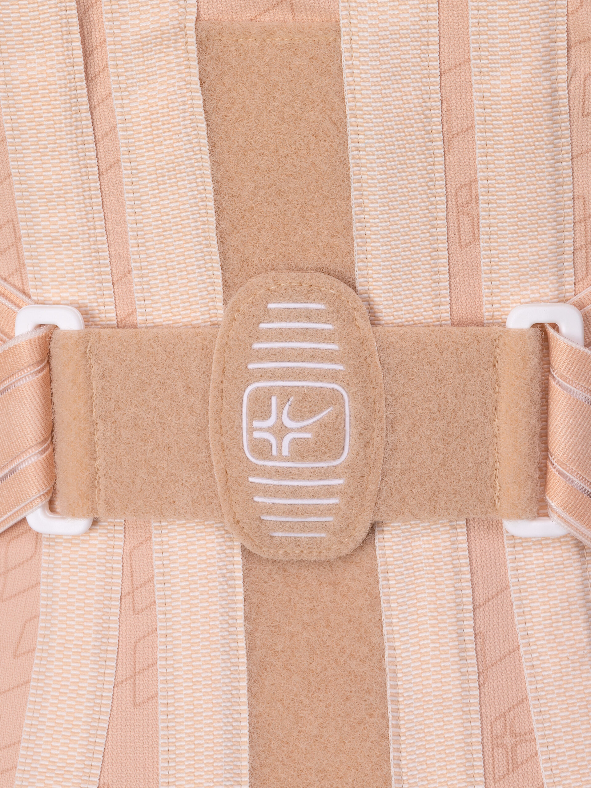 - Sistema di trazione: tiranti elastici rinforzati per una pressione mirata e una perfetta stabilizzazione del tratto lombosacrale; latex free / carrucole per avere una chiusura efficace col minimo sforzo / puntali in materiale polimerico morbido, per facilitare sia la presa che la rimozione del tutore.