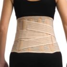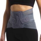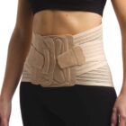 Corsetto elastico lombo-sacrale con rinforzi paravertebrali e tiranti pelvici.