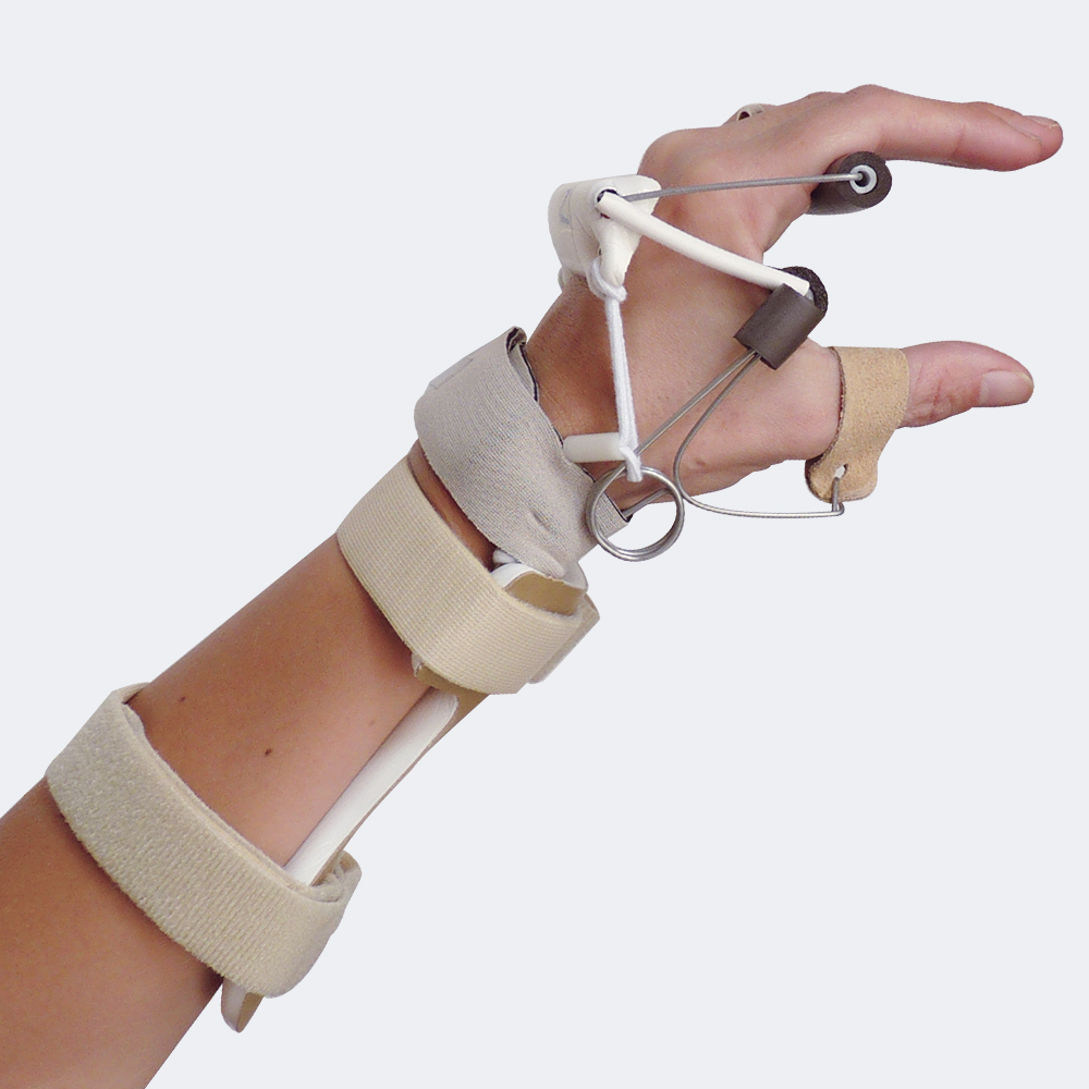 - Tirante elastico con fissazione regolabile per incrementare l’estensione del polso.