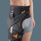 • Tiranti elastici calibrati, a incrocio laterale, per la: – prevenzione dell’eccessiva adduzione – limitazione parziale della flesso-estensione.